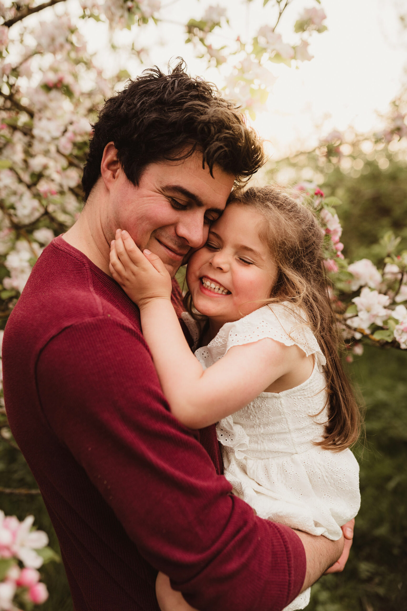 Book onto one during mid April. I’ll keep you in the loop regarding the bloom times and handle the weather watching for you. As long as you are flexible for change and happy with a ‘back up bloom’ should mother nature be in a mood… blossoms are a gorgeous option for a spring family photoshoot. See the photos below from cloudy and sunny parts of the session and the variety the adjacent field provides.